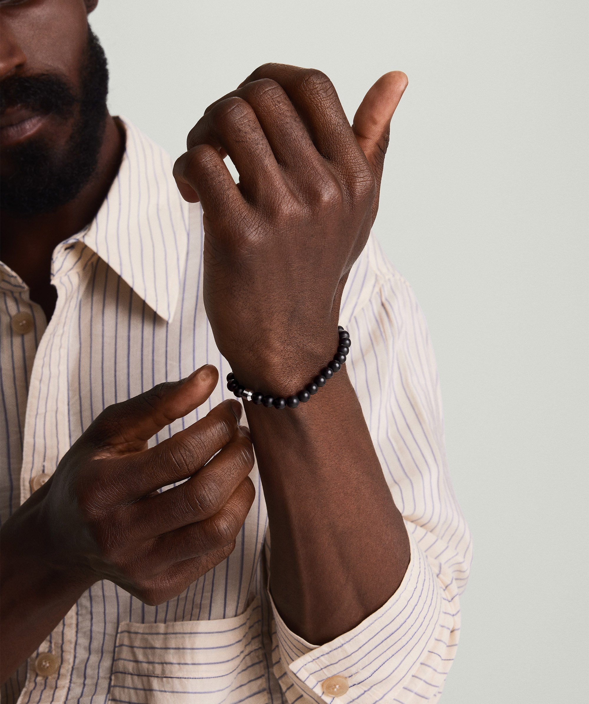 Add some texture and shape to your everyday with this beaded bracelet. Handcrafted in sterling silver, featuring a swivel clasp.