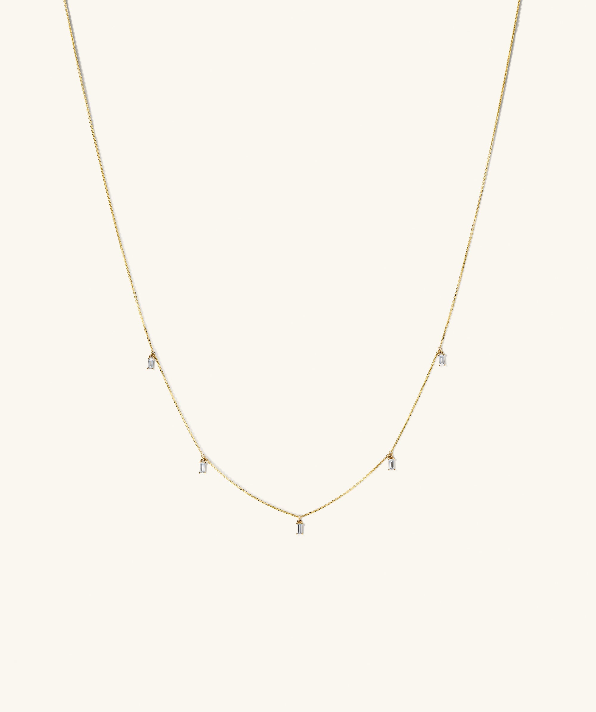 A necklace that adds a hit of shine to every necklace stack, thanks to five dangling lab grown diamonds.