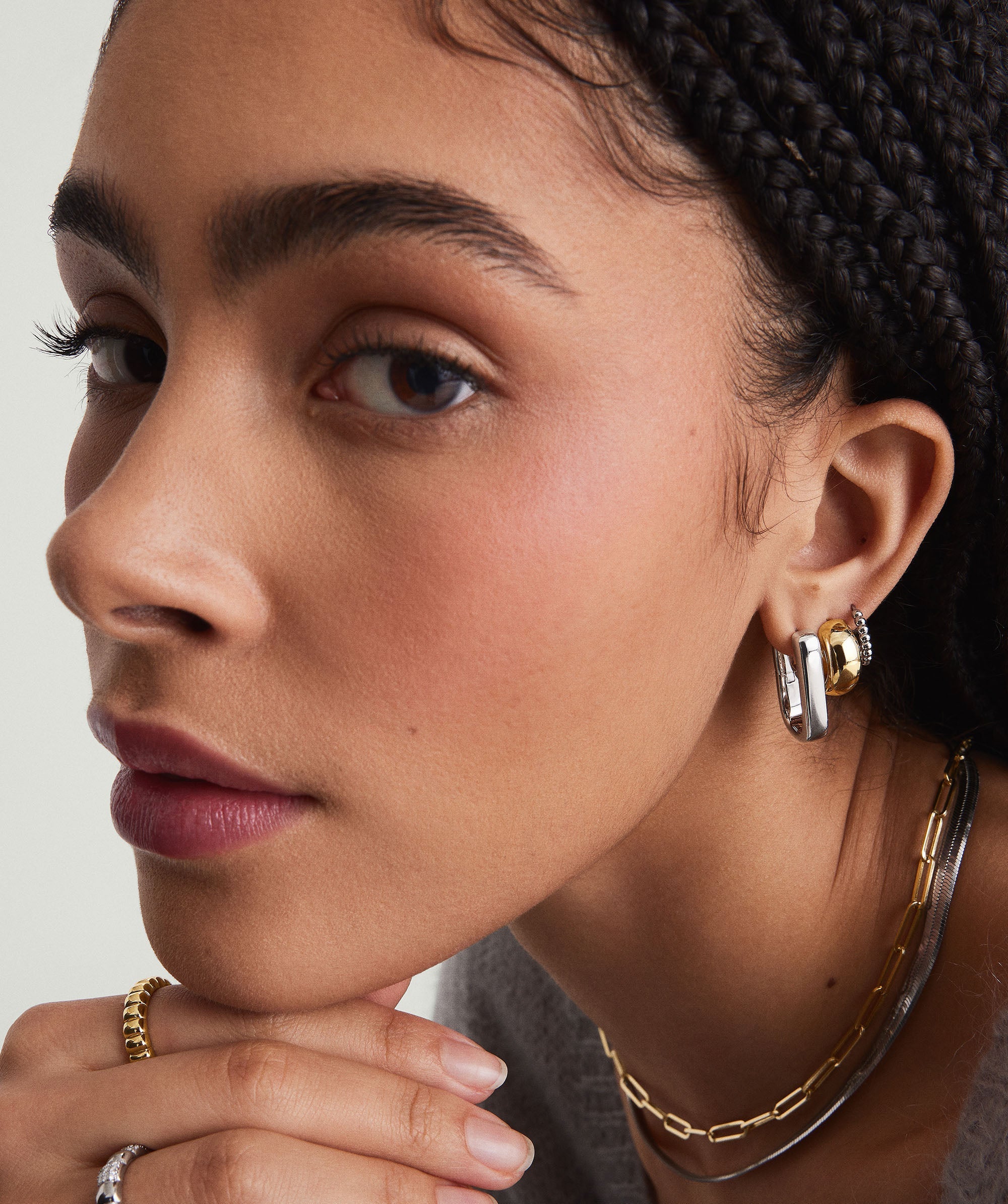 The most pillowy hoops—now in “U” shape. Featuring a clicker closure for maximum comfort and security.