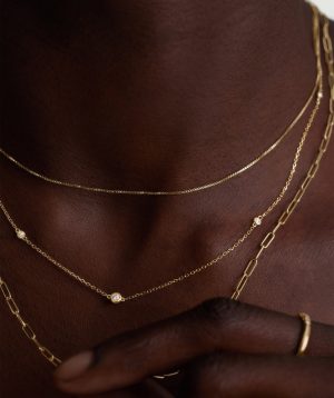 A jewelry box staple with a cursive twist. Wear one at a time or combined with your initials, your crush’s, your pet’s and while we’re at it, your best friend’s too. Showcase your favorites in gold layers.