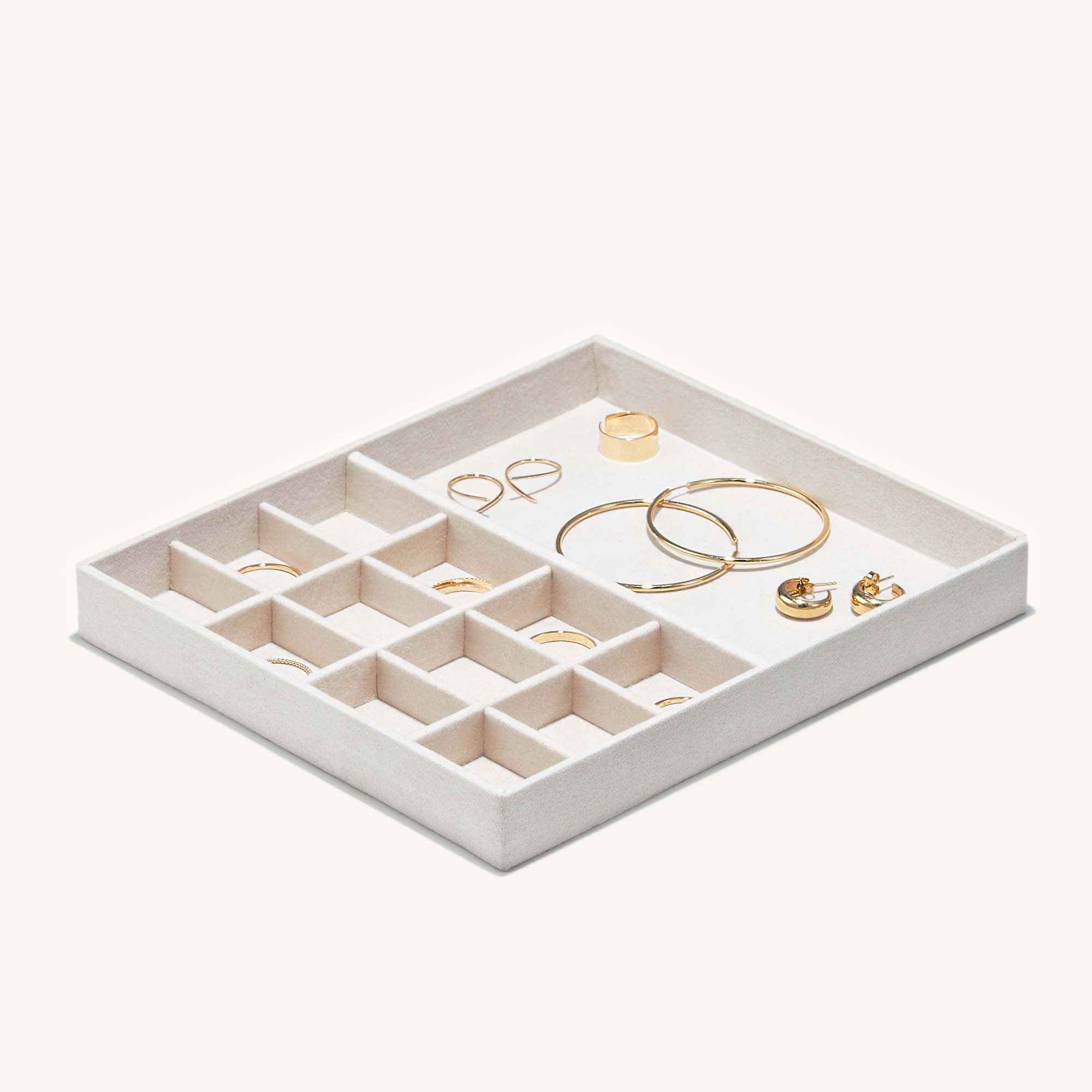 It’s time to get it together—your jewelry that is. Thank your Ziploc bags + chipped dishes for their service, because you’re moving on up. Featuring three removable trays and specially designed compartments to fit all things fine. Plus, add a personal touch with monogrammed letters.