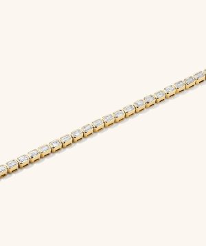 A cut above other tennis bracelets. The emerald cut bezel setting is something special—handcrafted to perfection with lab grown diamonds that elevate every look. Sounds like a grand slam.
