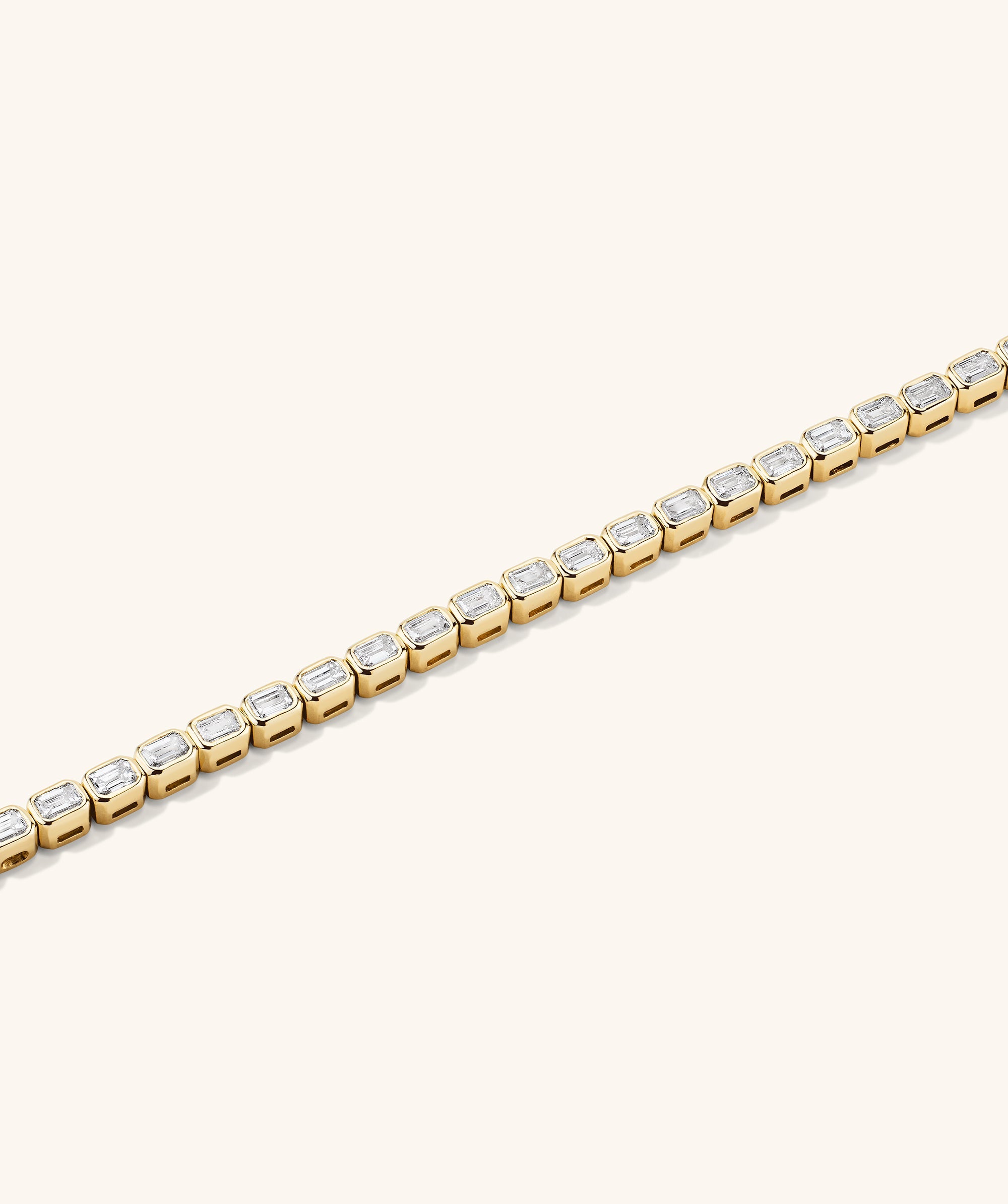 A cut above other tennis bracelets. The emerald cut bezel setting is something special—handcrafted to perfection with lab grown diamonds that elevate every look. Sounds like a grand slam.