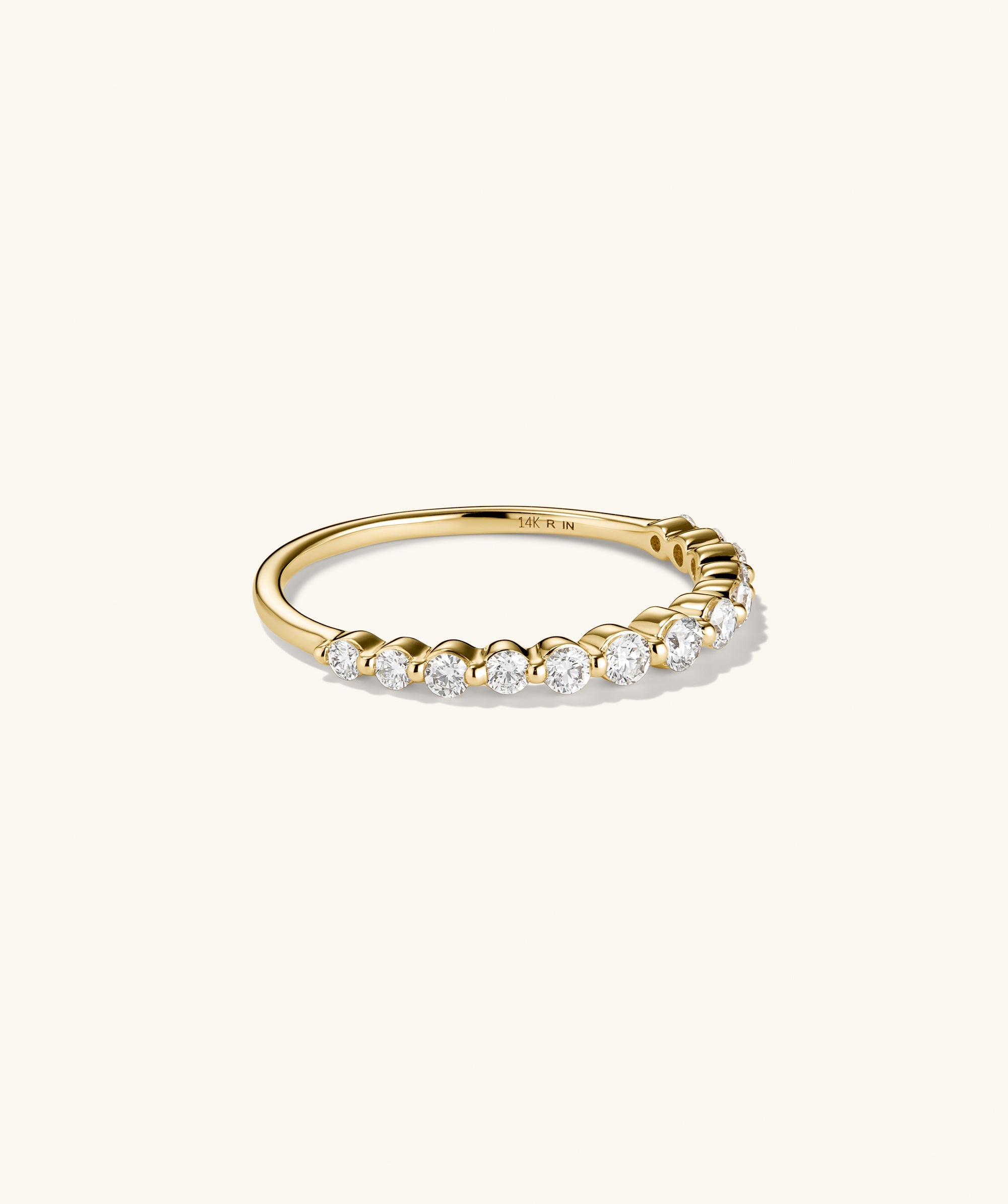 This half eternity lab grown diamond ring features graduating stones for an eye-catching ring that adds dimension to your stack (or wears perfectly on its own).