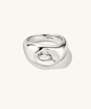 We reimagined our iconic Dôme silhouettes with this molten ring featuring a gemstone pressed into the surface. Sculptural, bold, and easy to wear on repeat.