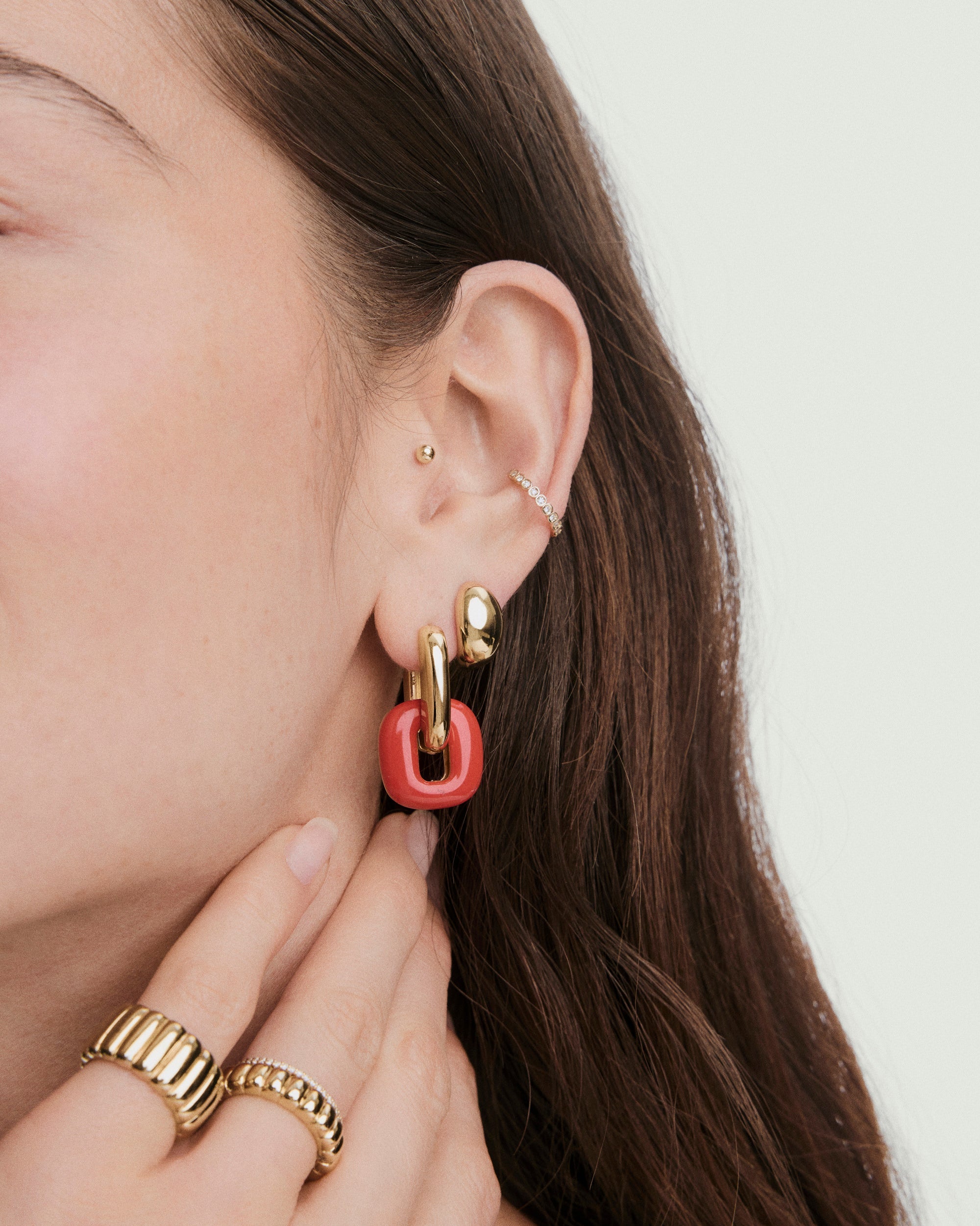 Designed to evolve and change with you, the Stevie Hoops’ interchangeable and reversible links let you redefine your look again and again.